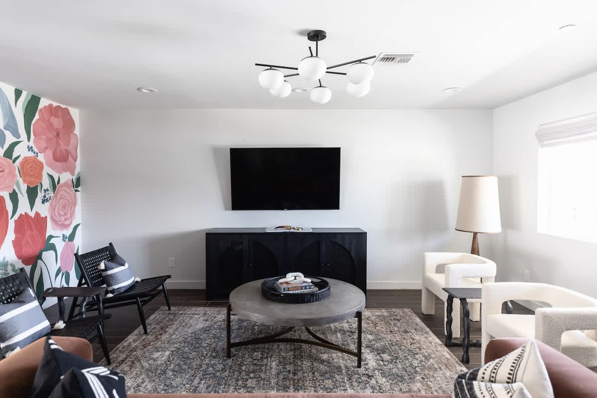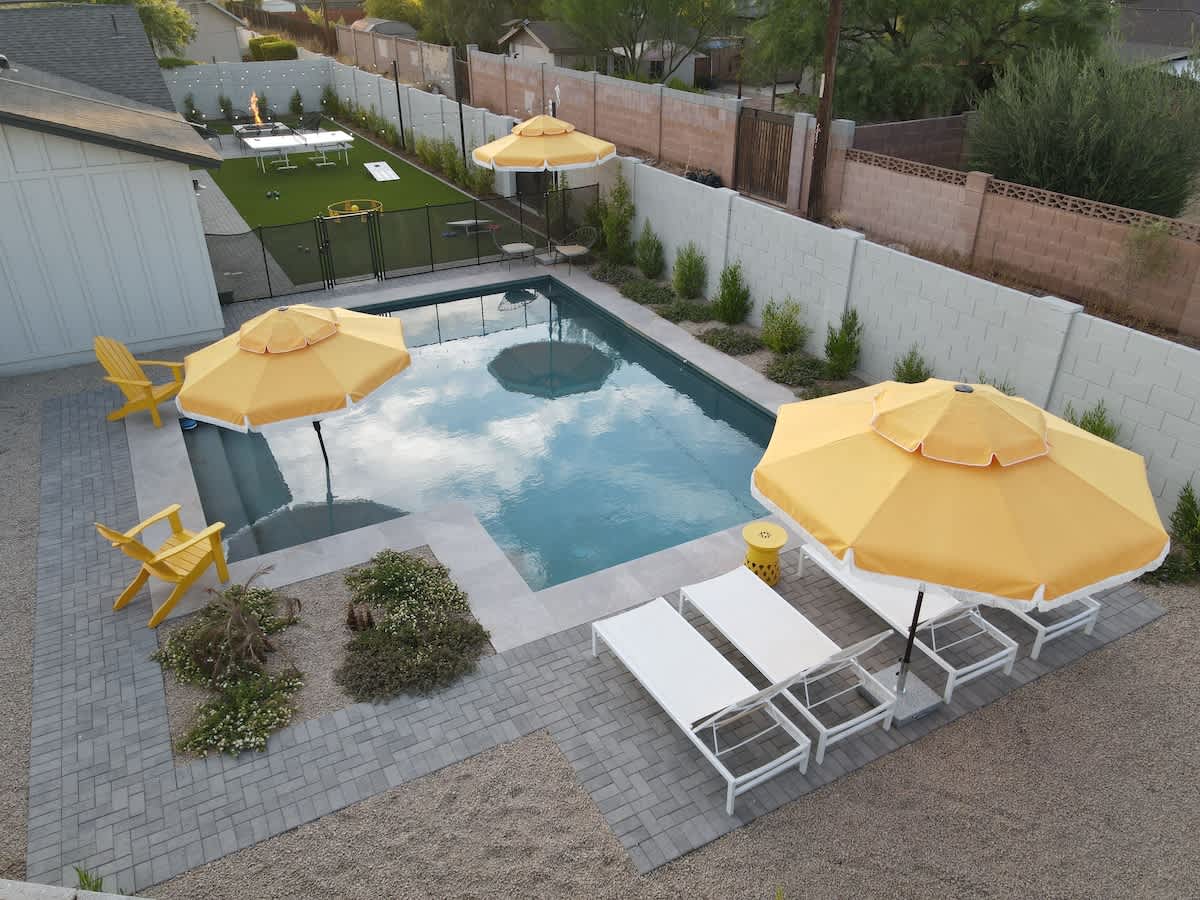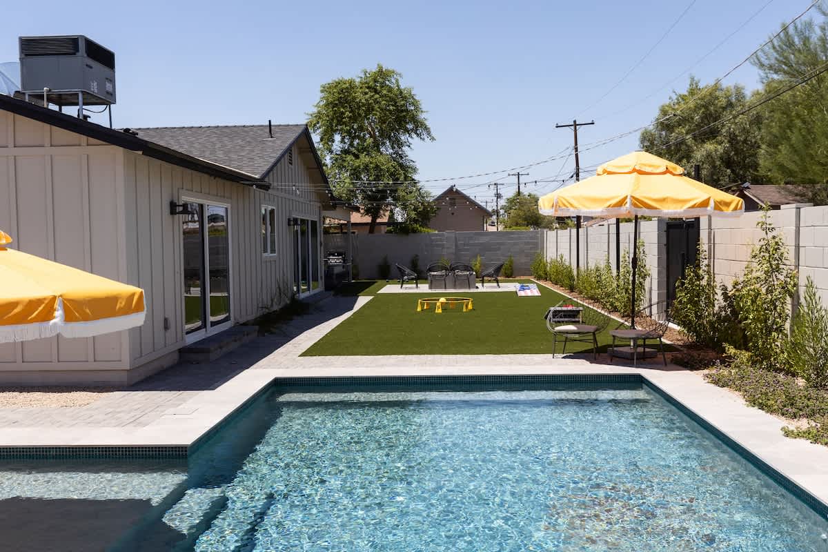 BRAND NEW construction, furnishings, luxury bedding, massive backyard! Split double masters with ensuites! The Wildflower is located 1 mile from the best of Old Town’s nightlife, shopping, restaurants. Why leave the house?! Backyard boasts gas fire pit, covered patio, TV, yard games, BBQ, heated pool with Cabo ledge. Original mural art sets the tone for the off-beat modern decor throughout. No detail is left out! Please no large groups and parties
